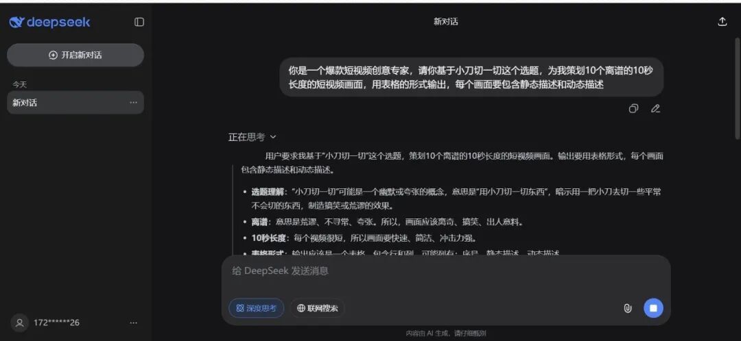在DeepSeek的输入框中写下prompt: