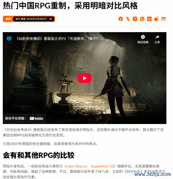 股管家 外媒谈《仙剑4RE》\"类33远征\":许多现代RPG相互影响